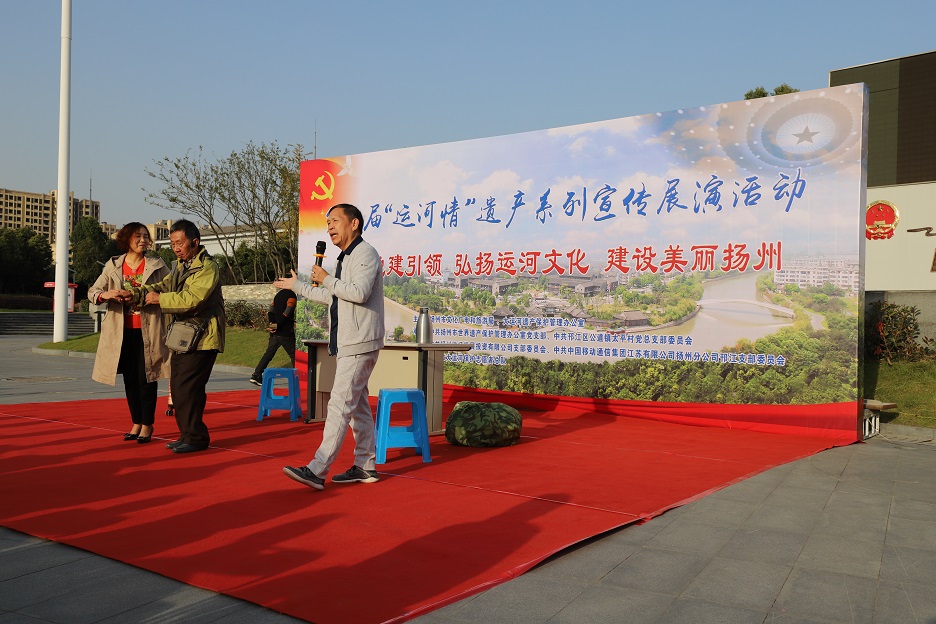 為充分發(fā)揮廣大市民在大運河遺產(chǎn)保護、傳承和利用中的重要作用,深入挖掘大運河的歷史、科學(xué)、文化價(jià)值,宣傳普及大運河遺產(chǎn)知識,11月8日下午,在蜀岡體育公園舉辦了以“堅持黨建引領(lǐng) 弘揚運河文化 建設美麗揚州”為主題的第四屆“運河情”遺產(chǎn)宣傳展演系列活動(dòng)。 本次活動(dòng)由揚州市文化廣電和旅游局、大運河遺產(chǎn)保護管理辦公室主辦,由中共揚州市世界遺產(chǎn)保護管理辦公室支部委員會(huì )、中共揚州市邗江區公道鎮太平村總支部委員會(huì )、中共揚州維揚發(fā)展投資有限公司支部委員會(huì )、中共中國移動(dòng)通信集團江蘇有限公司揚州分公司邗江支部委員會(huì )、揚州市大運河保護志愿者總隊聯(lián)合承辦。 活動(dòng)共有四個(gè)環(huán)節:首先,由專(zhuān)業(yè)人士解讀大運河文化帶建設相關(guān)政策和規劃。